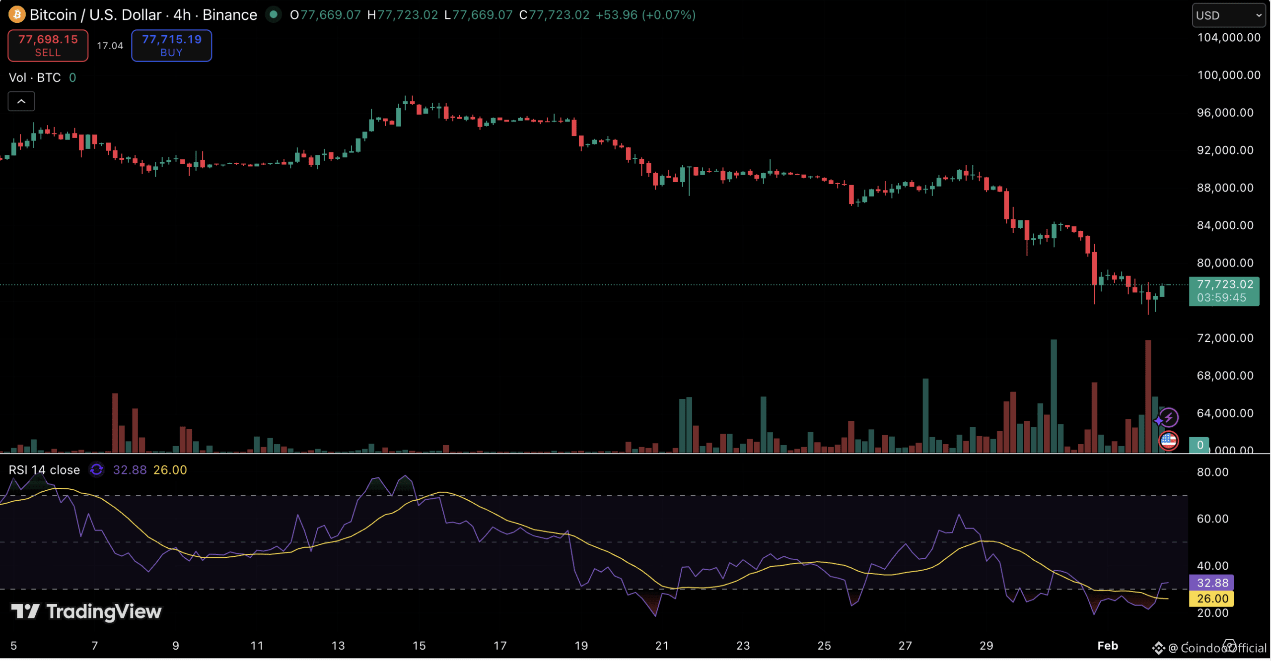Bitcoin is trading around $78,000 after losing $80,000 support, with heavy ETF outflows adding to pressure.