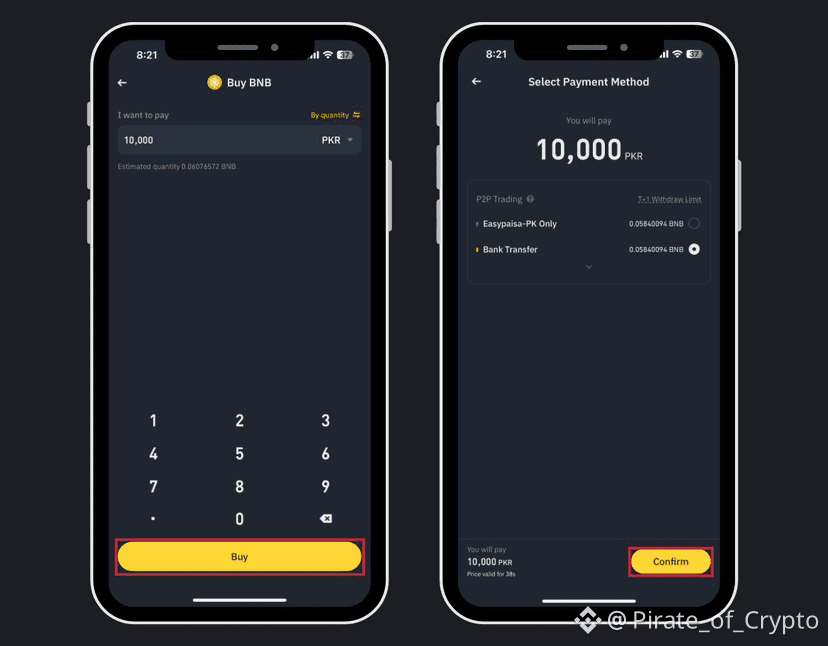 1️⃣ Choose the coin you want to buy (for example, BNB)