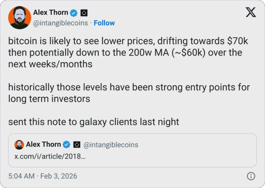 Le Bitcoin peut continuer sa tendance à la baisse, car il y a peu de catalyseurs capables de renverser la fortune de la cryptomonnaie, selon le responsable de la recherche de Galaxy Digital, Alex Thorn.