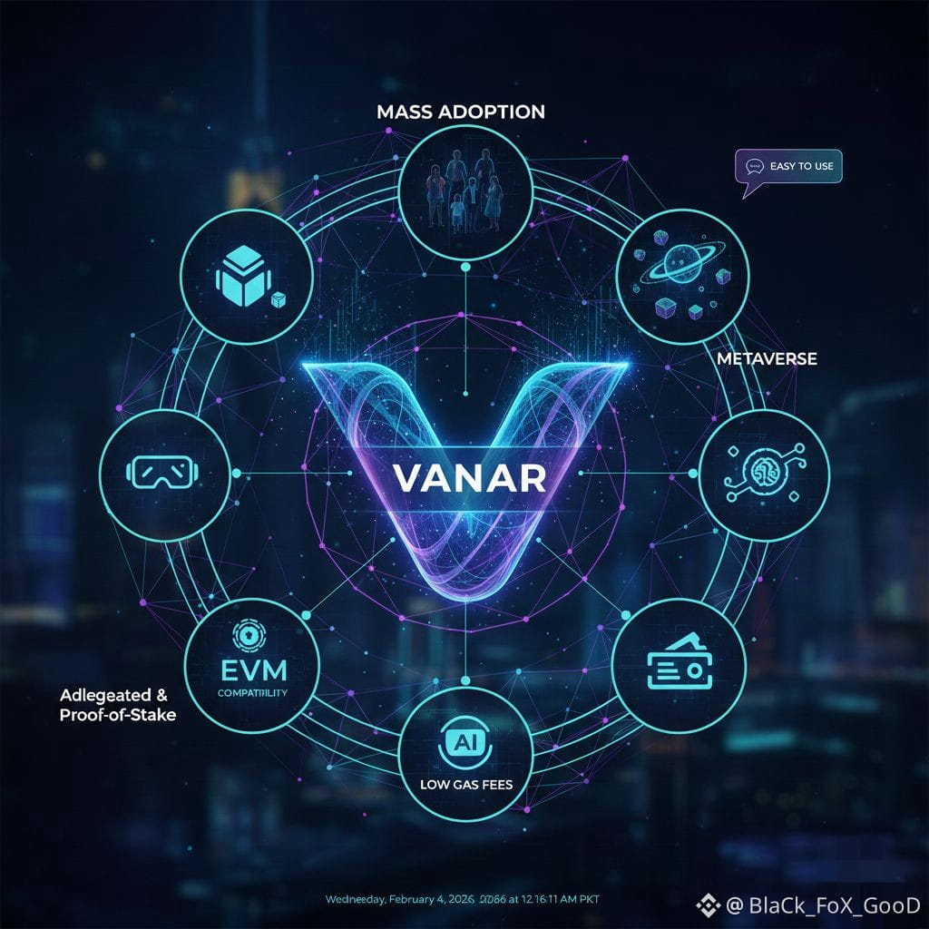 Vanar is built as a high performance blockchain that is fully compatible with the Ethereum Virtual Machine EVM. This design choice enables developers to reuse existing Ethereum smart contracts and development tools, minimizing friction for teams already familiar with Solidity and the Ethereum ecosystem. The network relies on a delegated Proof of Stake dPoS consensus model, in which token holders vote for validators responsible for block production and network security. This approach emphasizes speed, efficiency, and lower energy consumption, making it suitable for high volume consumer applications.