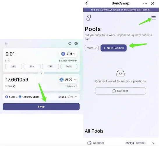 3. Recherchez et saisissez « SyncSwap » sur la page DApp, puis échangez et ajoutez des liquidités dans les pools.