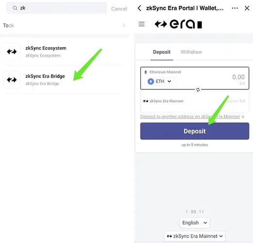 1. Basculez votre réseau vers Ethereum ou zkSync