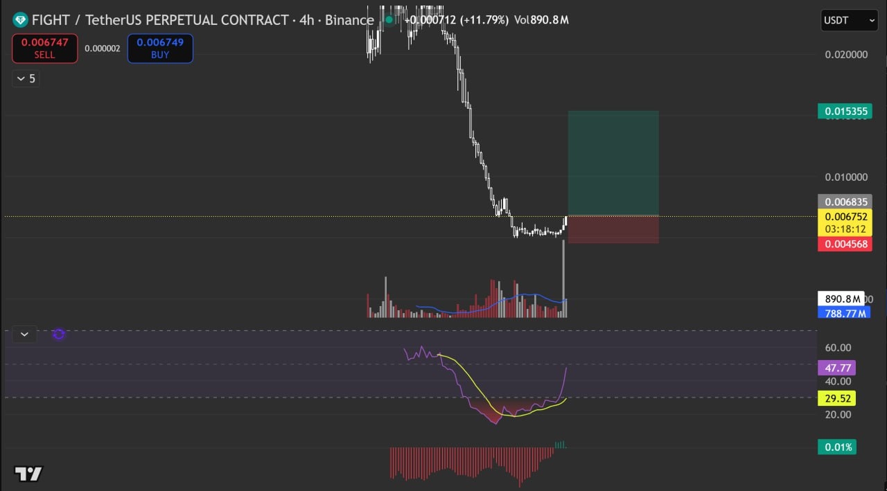 Alors que le marché plus large se refroidit, la **Compétition de Trading de la BNB Smart Chain** s'intensifie. J'ai trouvé une configuration à forte conviction sur $FIGHT qui offre un énorme **1:3,76 Ratio Risque/Récompense.**