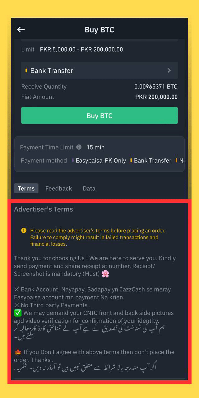 - Effectuez votre paiement selon les conditions de l'annonceur dans le délai de paiement et partagez une capture d'écran