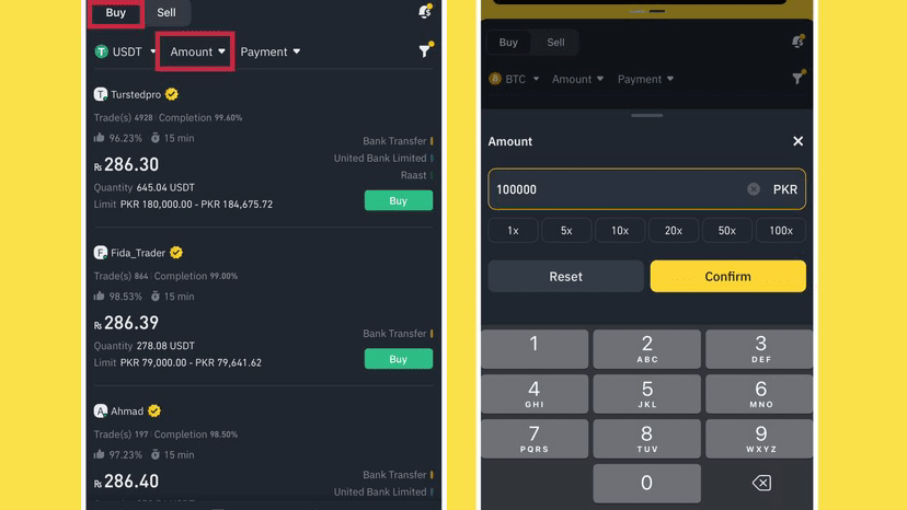 Pour votre commodité, cliquez sur le ‘Montant’ et écrivez le montant de la monnaie que vous souhaitez acheter - j'ai écrit 100,000 PKR