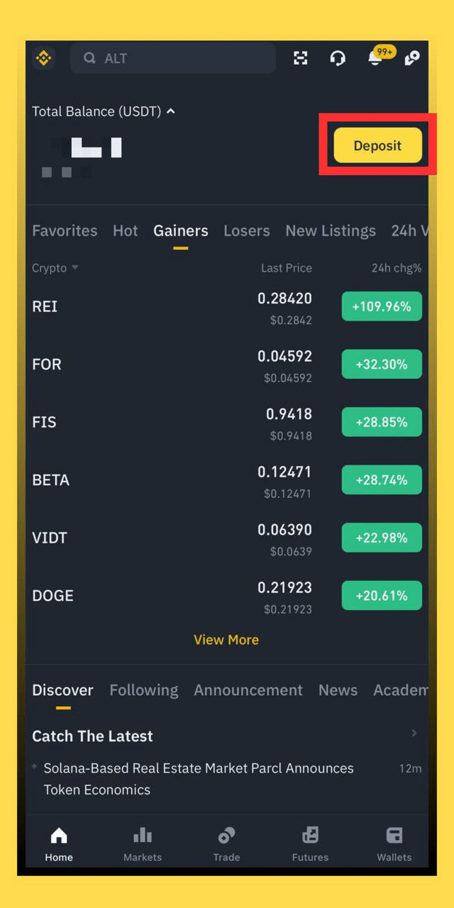 Si vous avez déjà un compte vérifié sur Binance, ouvrez l'application et la page d'accueil apparaîtra sur votre écran.