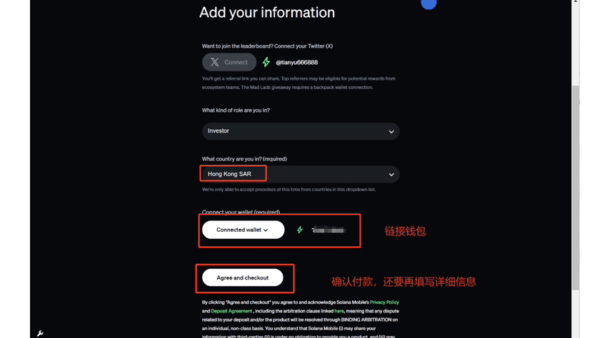 Ensuite, vous devez lier le portefeuille et remplir les détails.