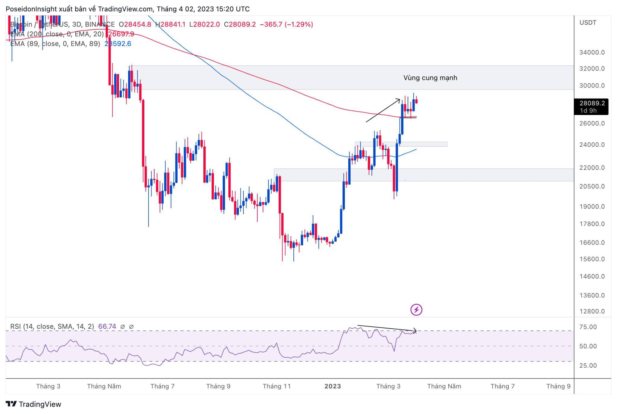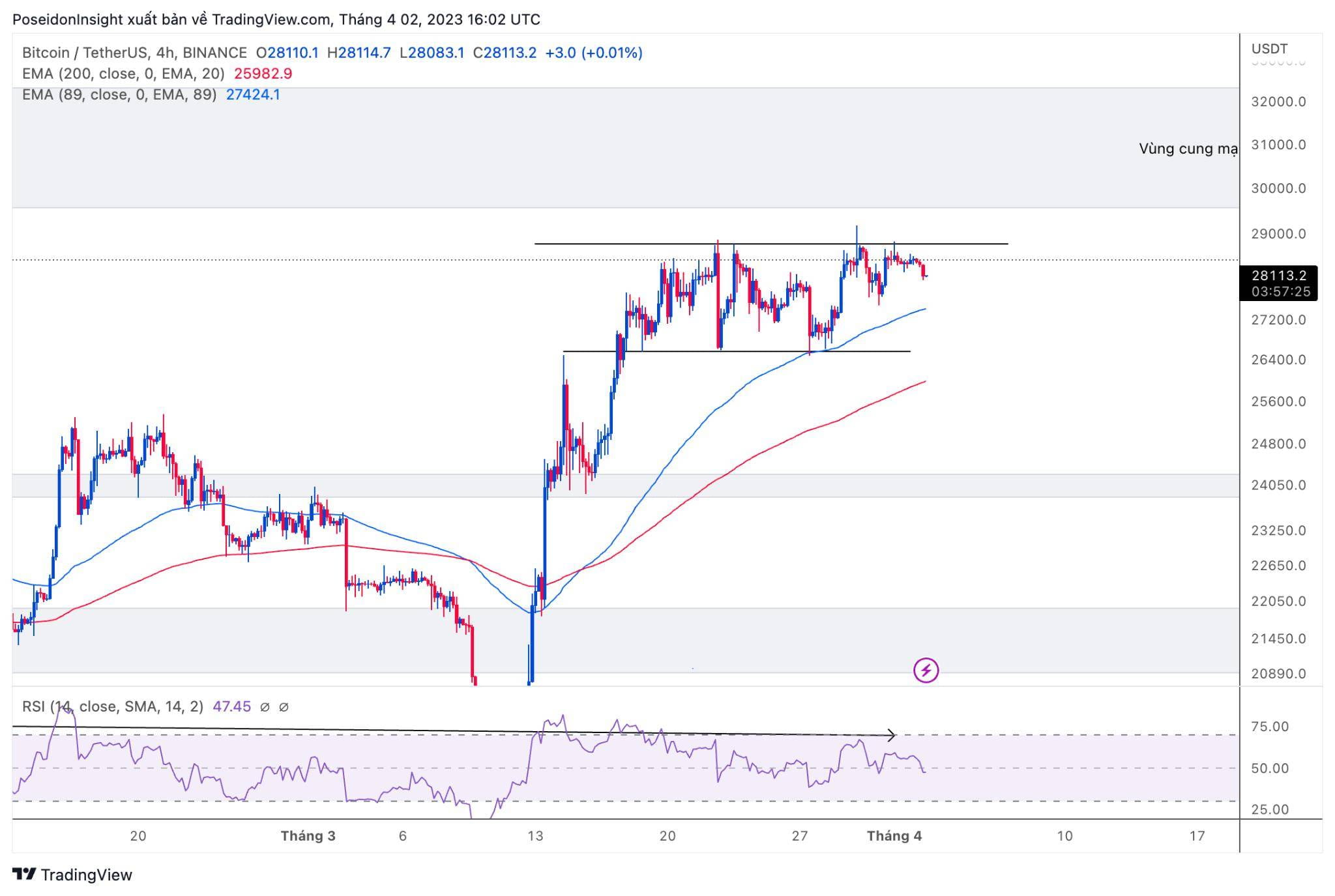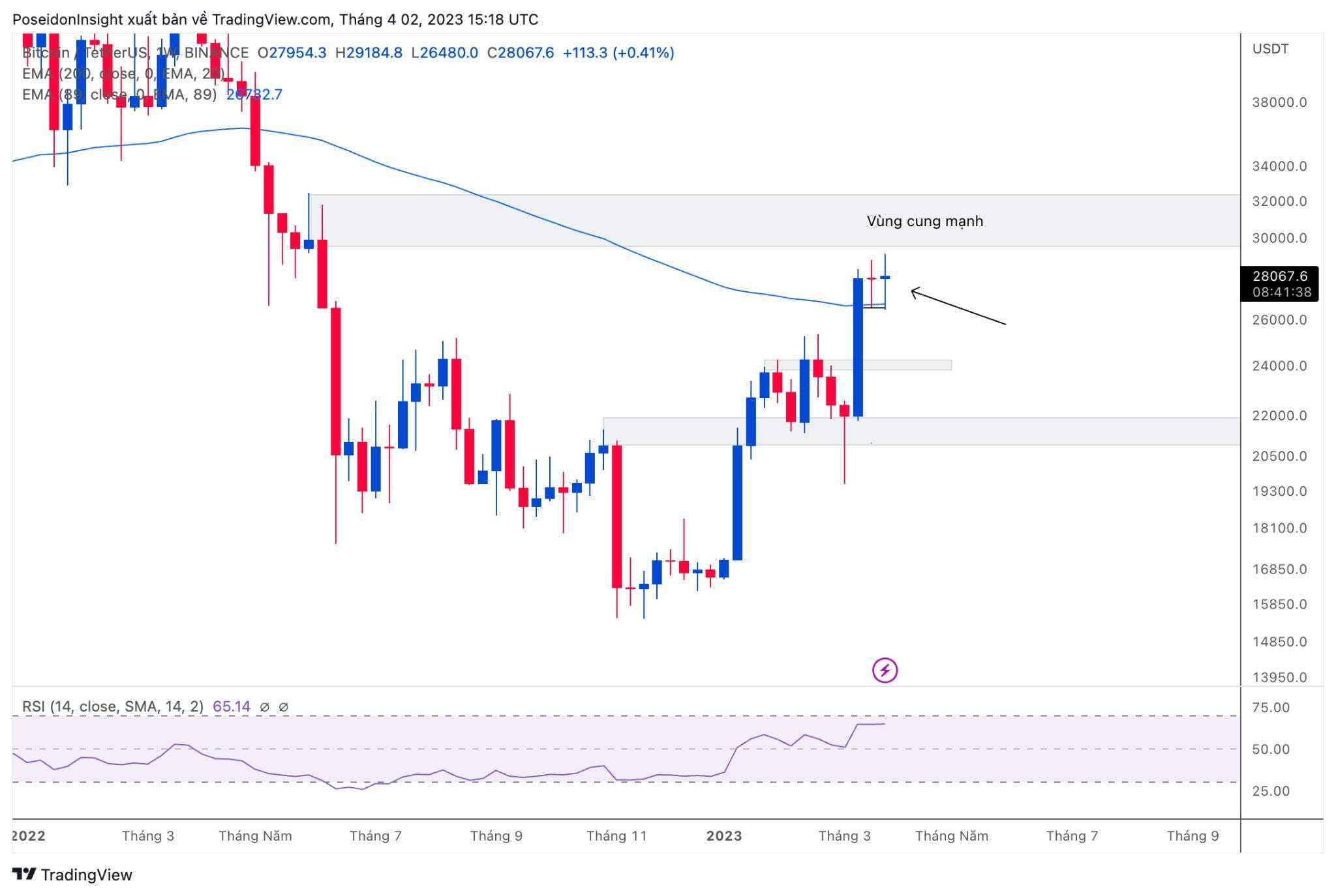 La suite est une bougie hebdomadaire latérale sous forme de doji. Les acheteurs ont tenté de faire monter le prix pour tester la zone d'approvisionnement de 30 000 à 32 000 USD, mais ont continué à échouer. Les vendeurs ont fait baisser le prix pour retester l'EMA 89 et le prix a également rebondi rapidement, on peut donc voir que BTC évolue de côté.