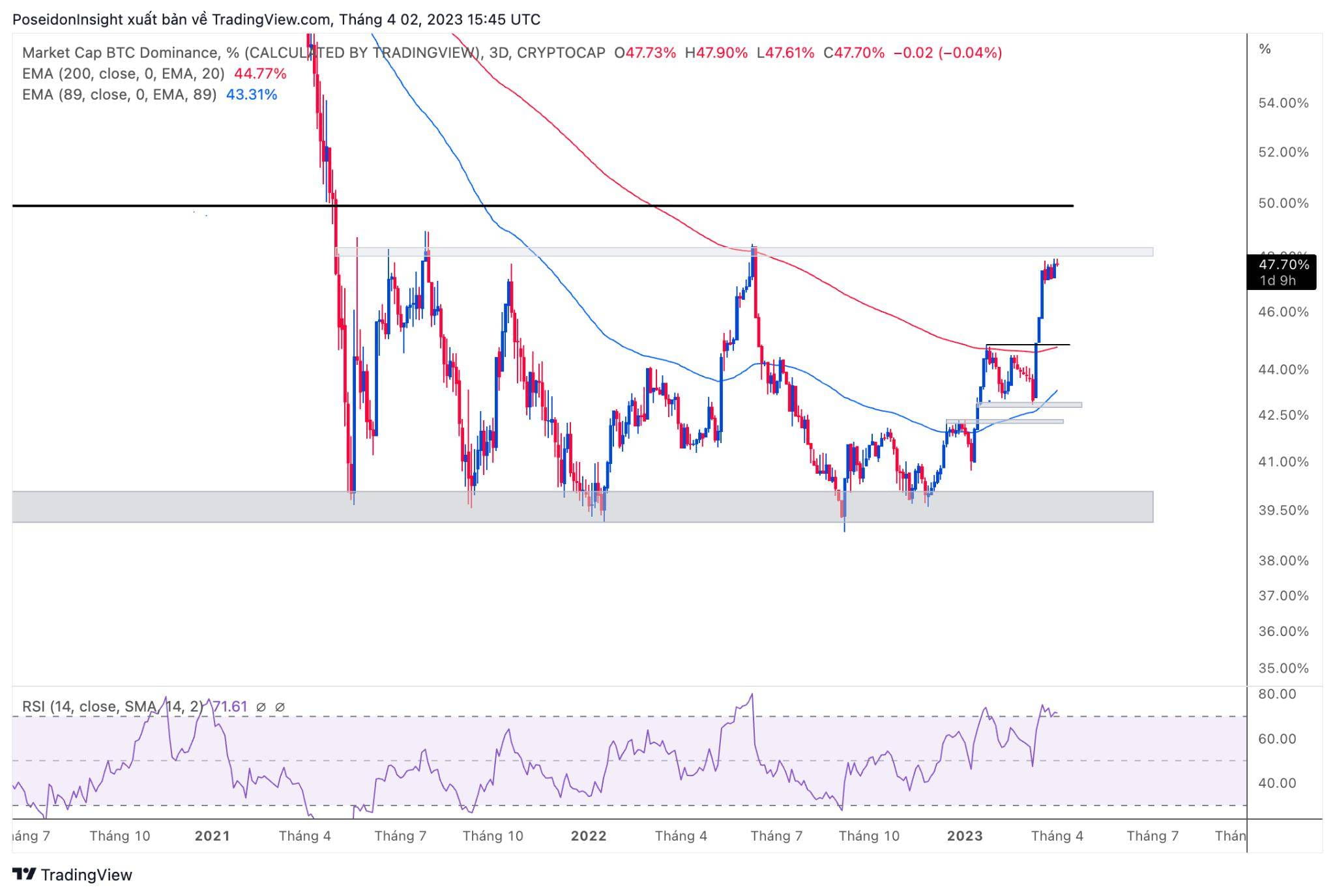Semblable au BTC, BTC.D se situe également juste en dessous d’une forte résistance. Nous nous attendons à ce que BTC.D s’adapte dans un avenir proche pour faciliter la tâche d’Altcoin.