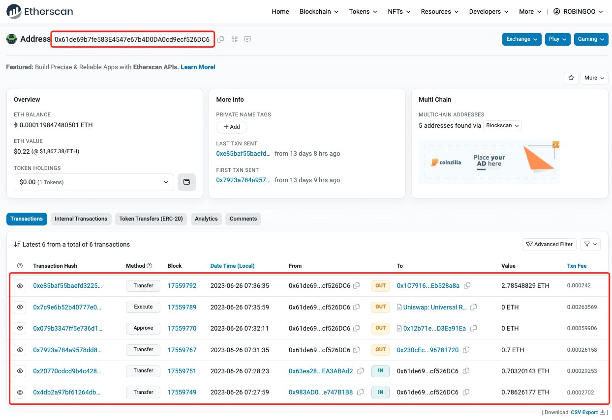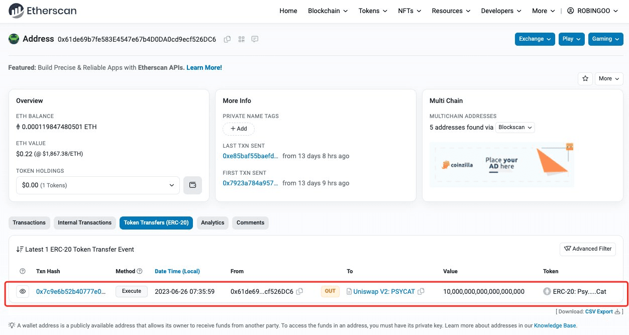 L'adresse 6DC6 n'a également que 6 enregistrements de transactions, dont aucun ne transfère $PSY à cette adresse. Alors, comment cette adresse peut-elle inexplicablement avoir des « montants magnifiques » en partant du principe que LP est entré dans un trou noir et a renoncé à ses autorisations ? à propos des jetons ?