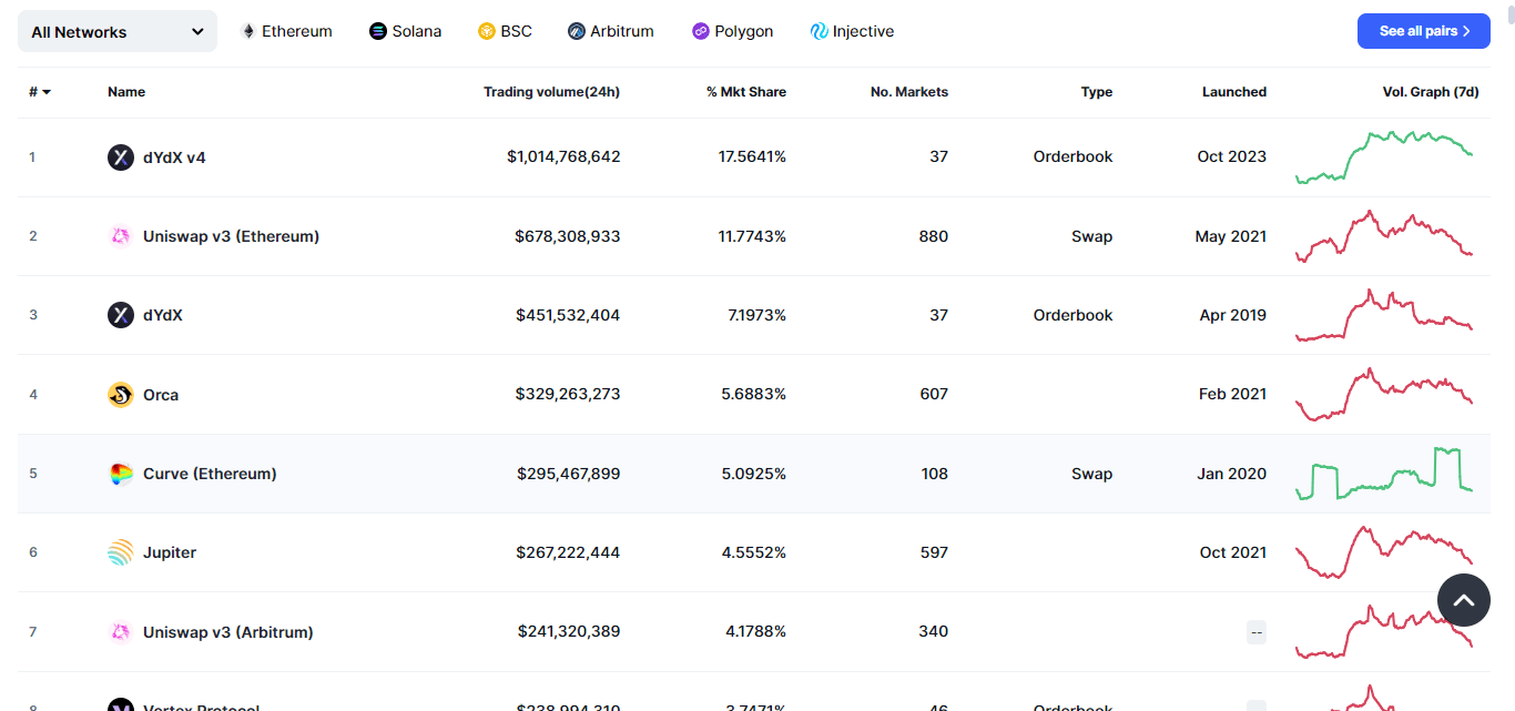 Le Jupiter est un DEX, désormais toujours situé entre le top 3 et le top 7 des DEX en termes de volume de transactions. Cela signifie que le projet est précis et utilisé par la communauté crypto.
