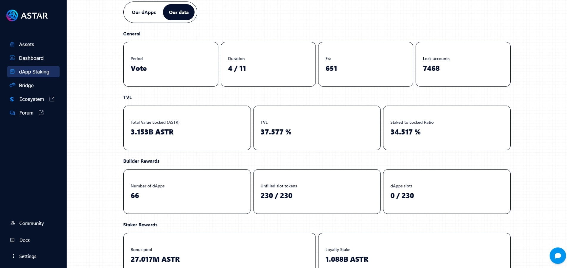 Par défaut, il y a 230 emplacements pour dApps/projets sur le portail de jalonnement qui sont actuellement remplis par 66 dApps/projets où le reste des emplacements dApp non remplis déclenchera beaucoup moins d'inflation.