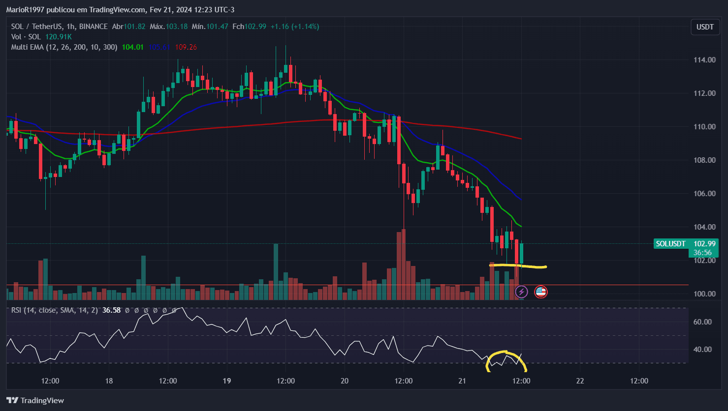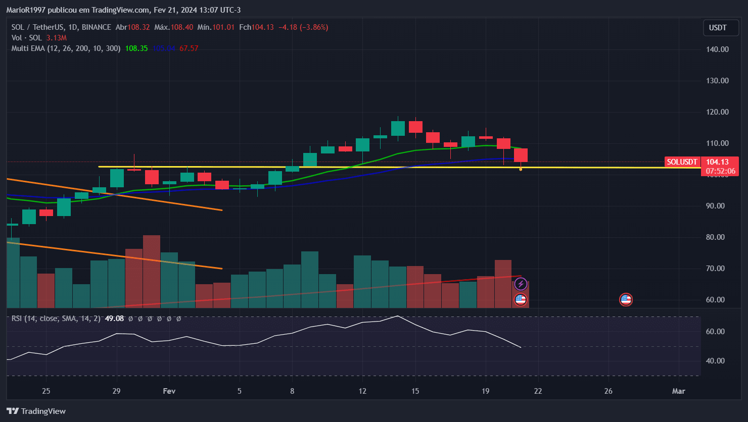 $SOL démontre un support à 102 $ sur le graphique journalier.