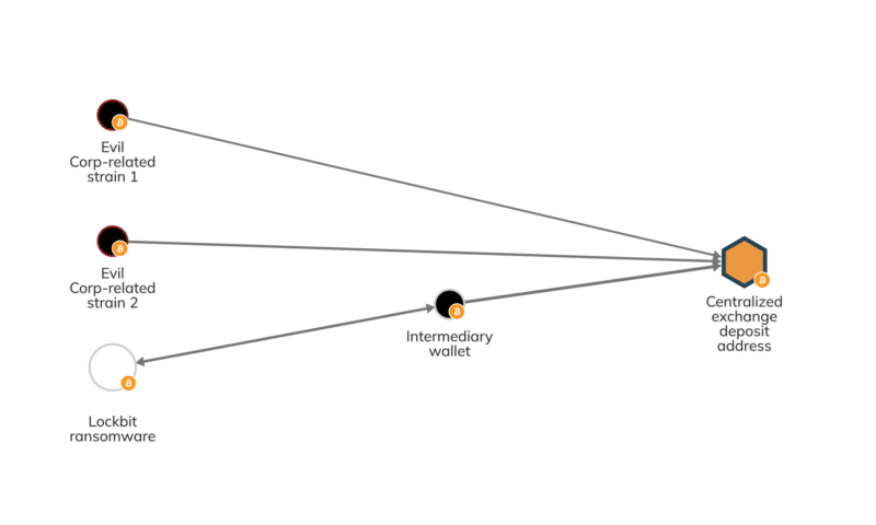 Les données en chaîne confirment le lien entre Lockbit et Evil Corp, comme le montre le tableau des réacteurs ci-dessous.
