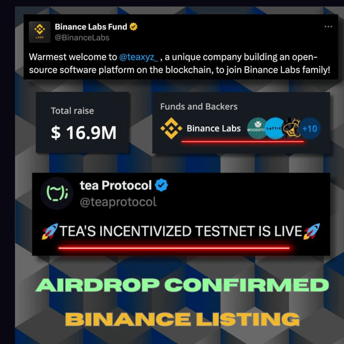 🚀 Nouvelle passionnante : Tea Protocol a officiellement lancé son testnet incitatif aujourd'hui ! Et ce n'est pas tout : un Airdrop confirmé et un listing inévitable sur Binance se profilent à l'horizon ! 🎉