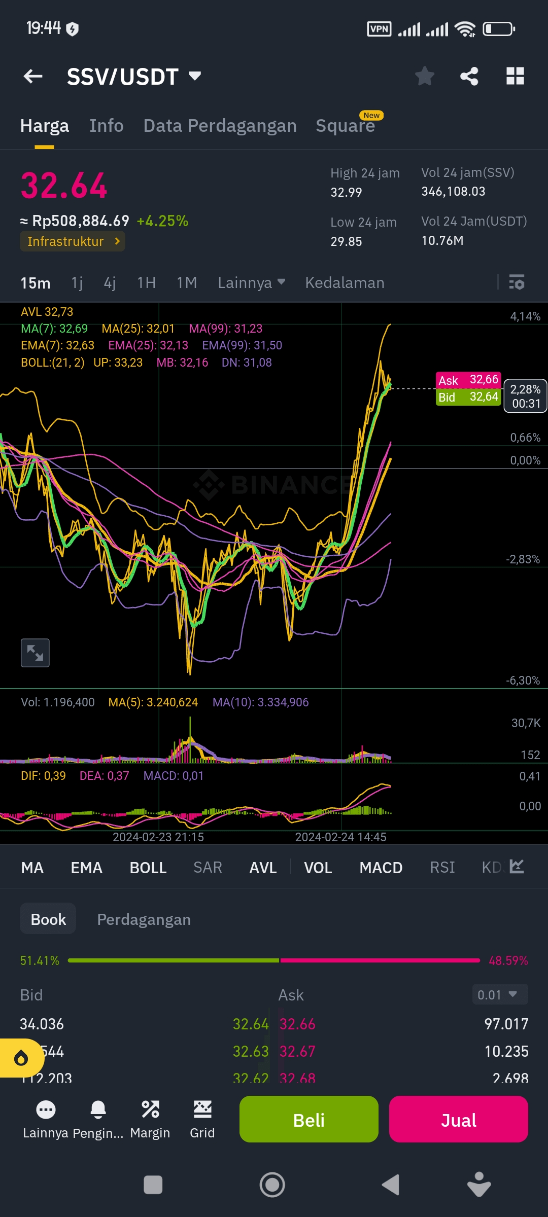 Le prix du réseau SSV à la même heure la semaine dernière était de 470 000 IDR et a augmenté de 7,20 %. Actuellement, le prix du SSV est de 502 099, soit une baisse de 4 %.