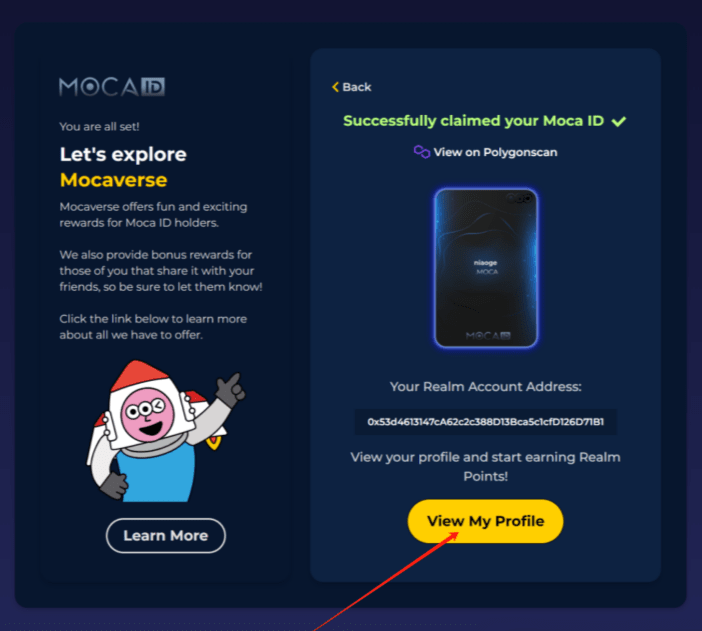 5. Après avoir créé le « Moca Id », cliquez sur « Afficher mon profil » ;