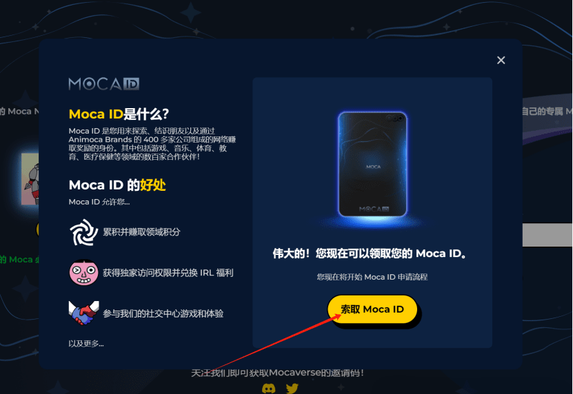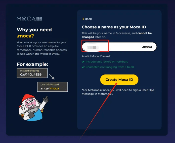 2. Créez un « ID Moca » ;