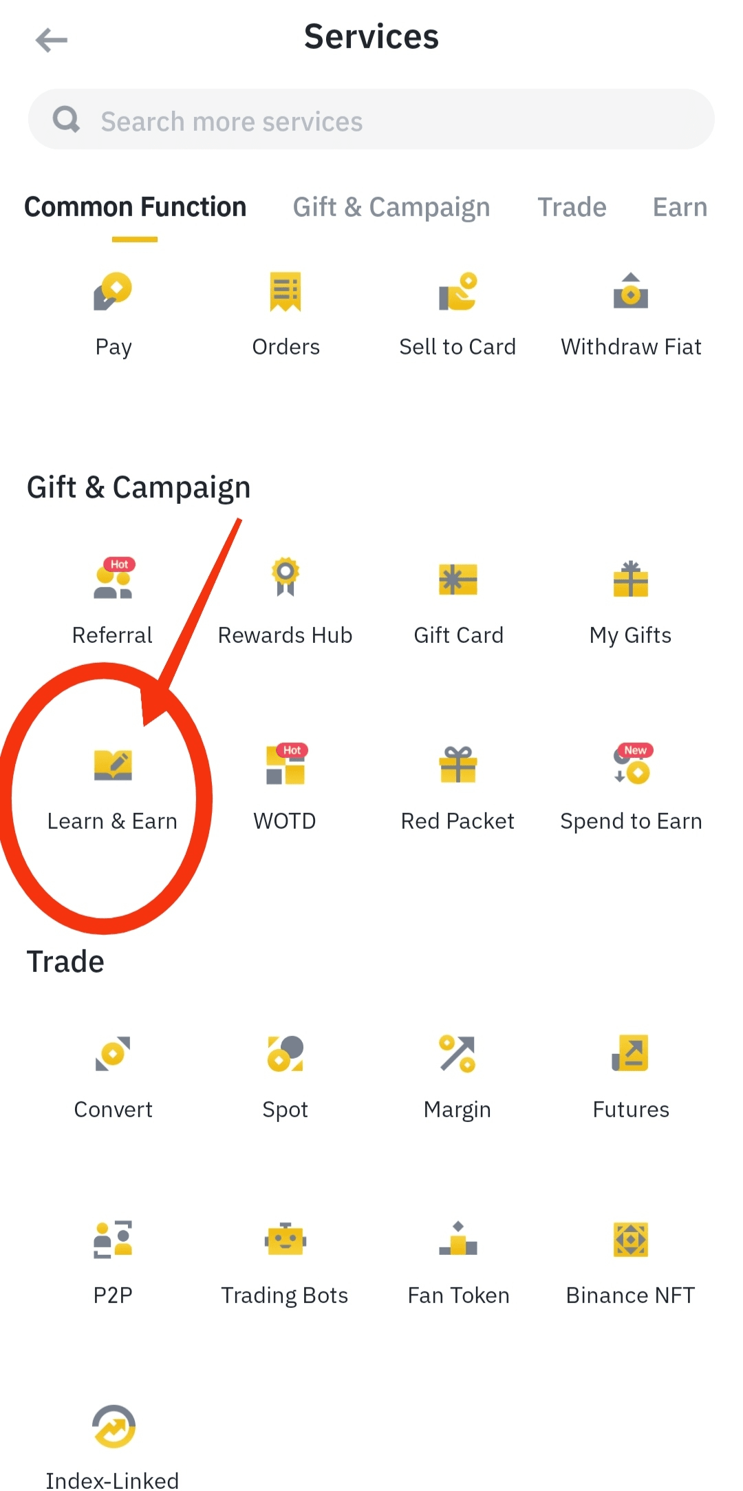Allez sur la page et cliquez sur apprendre et gagner.