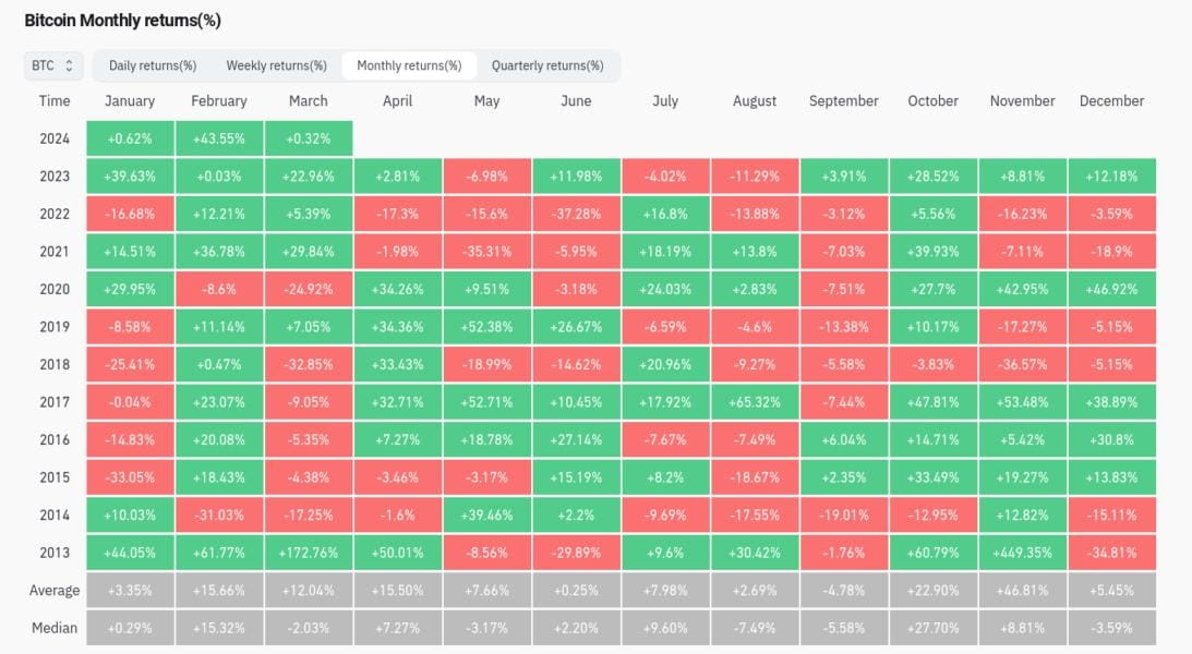 "Le passage à 64 000 dollars et la bougie haussière mensuelle de 49 pour cent n'étaient dans l'esprit de personne. Personne n'avait calculé que le prix du Bitcoin avait soudainement chuté à 58 000 dollars, que le prix restait au-dessus de 60 000 dollars et que l'afflux quotidien vers les ETF BTC était approchant les 8 milliards de dollars. »