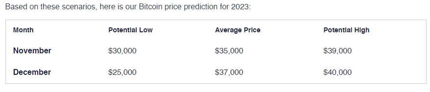 D’ici fin 2023, nous nous attendons à ce que le prix du Bitcoin se soit stabilisé autour d’un niveau de support, probablement proche de 35 000 $. Ce niveau pourrait fournir un point de départ pour que le prix du Bitcoin explose au cours des 12 prochains mois.