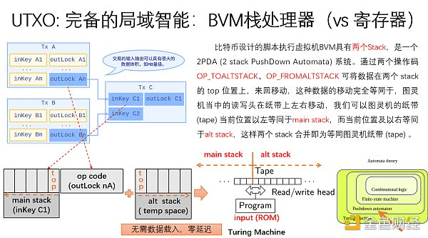 Selon le modèle UTXO de TBC, chaque chaîne UTXO est une machine de Turing. Un grand nombre de machines de Turing simultanées forment un réseau pratique, intelligent et complet de la blockchain, et son BVM sous-jacent est très différent de l'EVM.