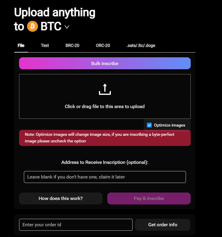 Grâce à ordswap, vous pouvez télécharger des fichiers, des images, des noms de domaine, des textes, etc., et vous pouvez également graver brc20 ou orc20, etc.