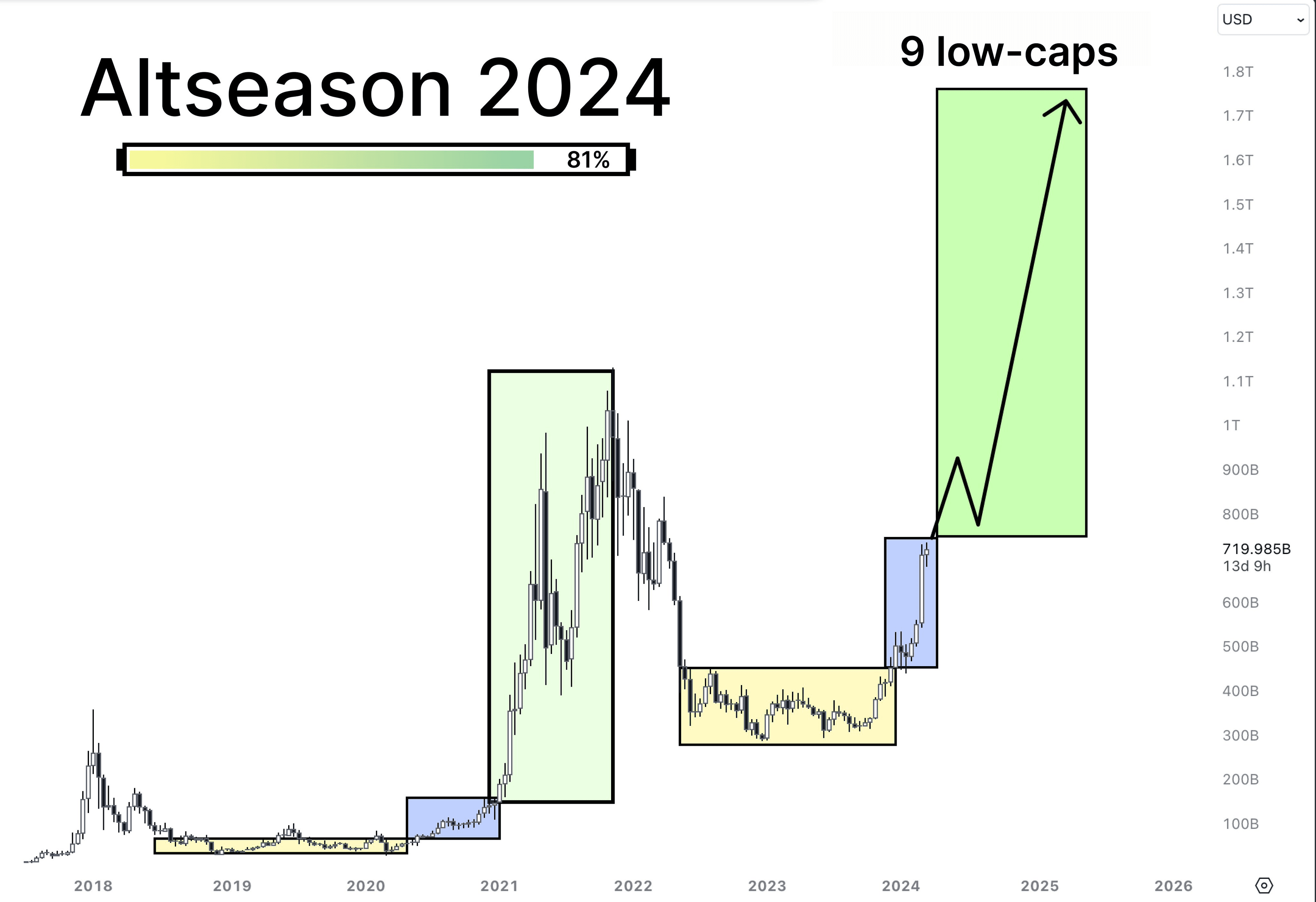 ☩ Mais le cycle vient à peine de commencer, les alts n'ayant pas encore entamé leur rallye, et les objectifs de Bitcoin sont encore loin.