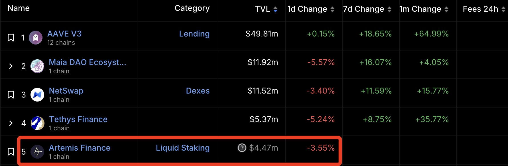 Artemis Finance se classe actuellement au cinquième rang en TVL dans l'écosystème#Metiset au premier rang dans la piste de jalonnement de liquidités #Metis, avec un TVL de 4,5 millions de dollars américains. Avec la cotation de#Metissur Binance, l'intérêt croissant pour L2 attirera sûrement davantage d'attention, et les premières opportunités méritent d'être explorées en profondeur. Tout comme les premières pépites écologiques de#OPet #ARB, les bénéfices seront considérables.
