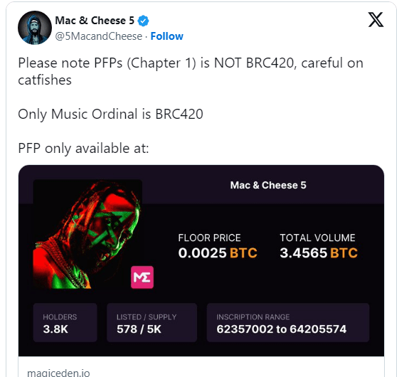 Le morceau inédit de l’album Mac & Cheese 5 est désormais enregistré en permanence sur la blockchain grâce au protocole Ordinals.