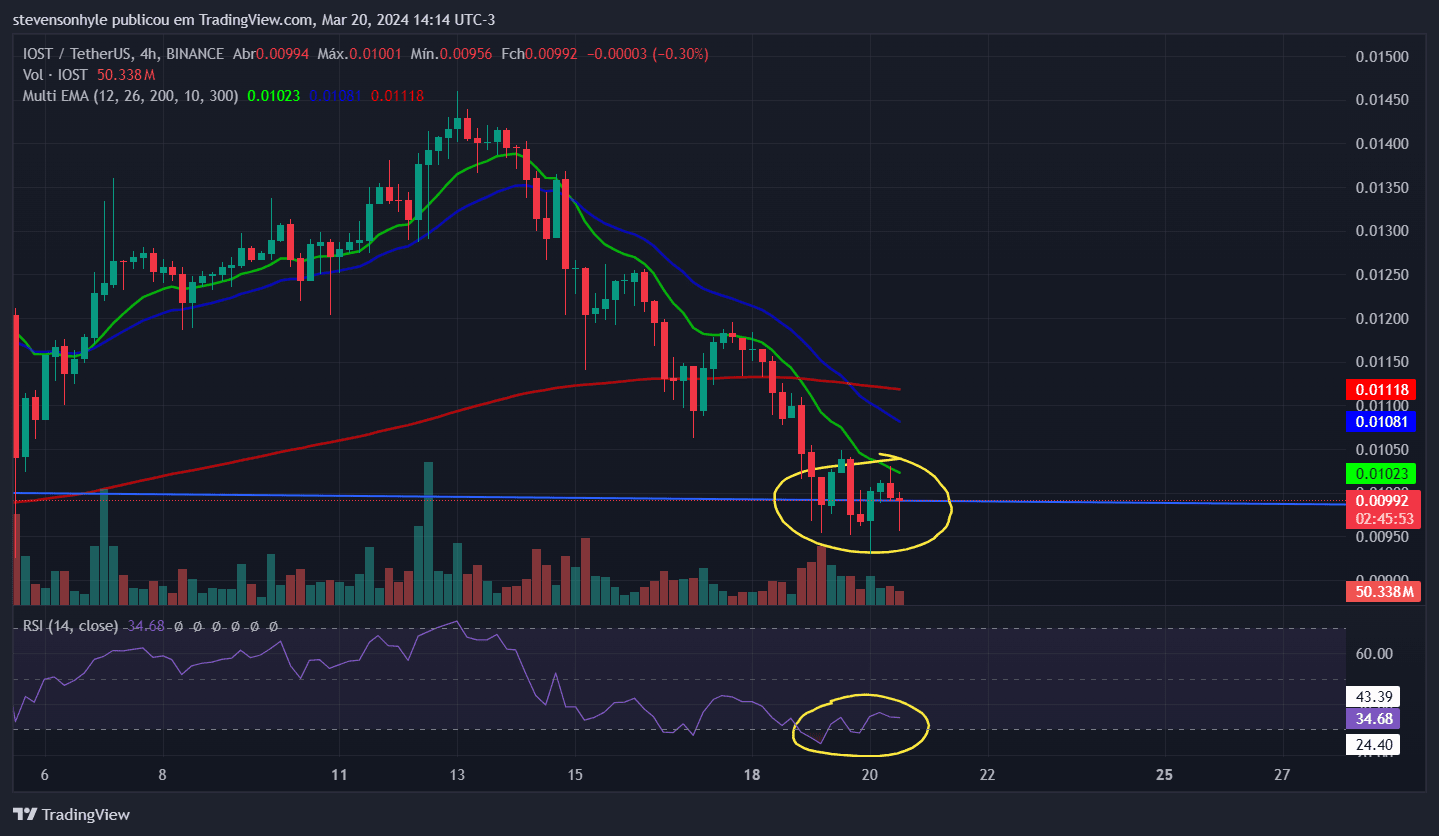 Enfin, l'IOST révèle une base de support sur le graphique hebdomadaire avec la moyenne sur 26 périodes, tandis que le RSI suggère une survente sur le graphique sur 4 heures.