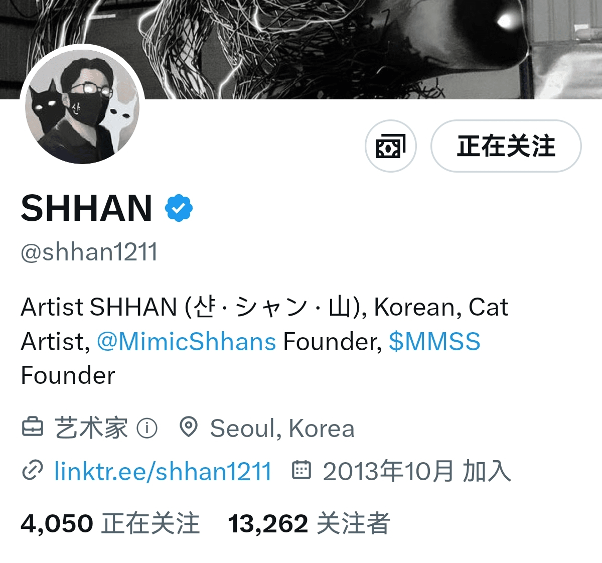La série d'œuvres d'art (Black Cat) créée par l'artiste coréen Shan montre que dans la vie trépidante de la journée, Shan a trouvé son propre moment de calme dans les nuits sombres. Avec la compagnie du chat noir MMSS à la maison, il s'est progressivement formé. un état indépendant sur plusieurs années de style et de style artistique. Le chat noir de Shan exprime qu'il recherche toujours un espace indépendant et une libération libre et sans contrainte au milieu de la pression et des frustrations de la vie.