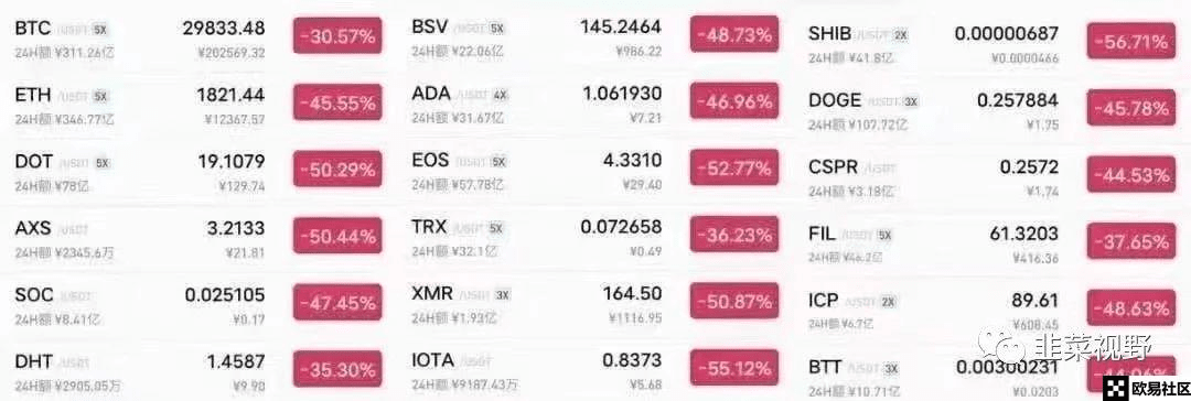 Après la réunion, j'ai ouvert le logiciel de trading et j'ai constaté qu'il n'y avait plus d'argent sur le compte. J'ai d'abord cru à une erreur d'affichage, jusqu'à ce que je voie l'aiguille profonde, une aiguille presque coupée en deux ! Le Bitcoin est passé de 44 000 $ US à 29 000 $ US ce jour-là, soit une baisse de 34 %. Presque tous les jetons sur le marché ont été durement touchés et le cercle monétaire est plein de sang. Le pouvoir destructeur n'est pas inférieur à 94 et 312, car trop de gens perdent de l'argent.