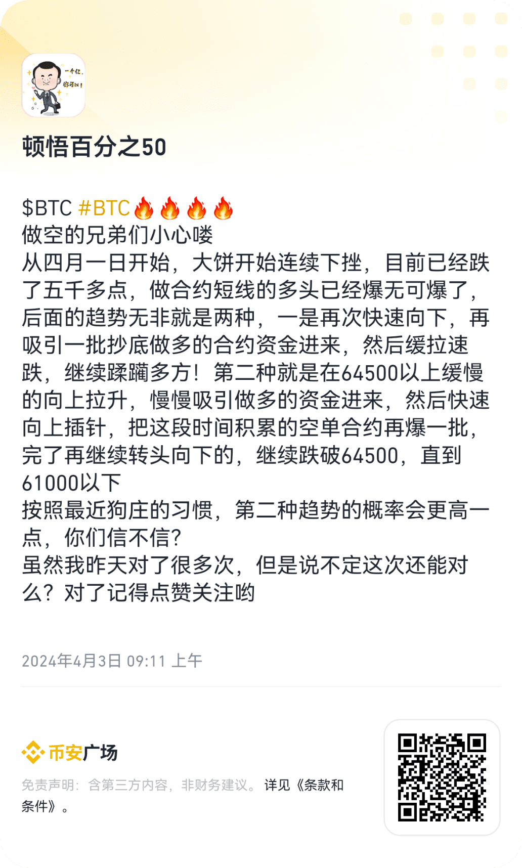 $BTC #BTC🔥🔥🔥🔥 La tendance a été assez calme toute la journée du 3. Le marché prédit hier matin qu'il augmenterait d'abord lentement, puis reculerait fortement, puis chuterait après l'explosion des commandes à découvert. , et il est toujours dans la première étape, il a oscillé avant 65500-66600. Il n'y a pas de surprises ni de surprises. Cependant, hier #1000stat a tiré comme un propre doigt et a effacé deux de mes T-. En vendant des commandes, j'ai réalisé un petit bénéfice de 200U. De plus, bien que le gâteau ait augmenté, le bénéfice des commandes de réseaux courts est toujours d'environ 2 700. Cette stratégie fonctionne depuis plus de cinq jours, et dans l'ensemble, je suis très satisfait !