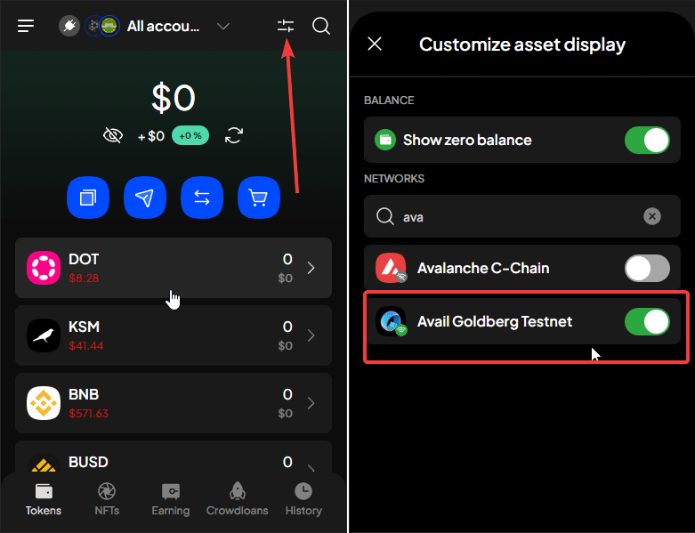 🔹Enable "Avail GoldBerg Testnet