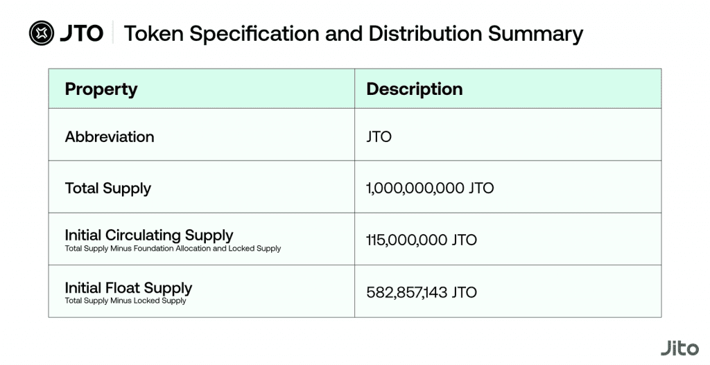 Un aspect remarquable de cette annonce est le largage orchestré par la Fondation Cayman, comprenant 90 millions de jetons JTO pour distribution immédiate et 10 millions supplémentaires débloqués au cours de l'année prochaine. L'éligibilité à ce largage était basée sur les contributions des utilisateurs au développement et à la croissance de Jito Network, englobant les détenteurs de longue date de JitoSOL, les utilisateurs interagissant avec JitoSOL sur divers protocoles DeFi, les validateurs Solana exploitant le client Jito-Solana MEV et les participants actifs utilisant le MEV de Jito Network. des produits.