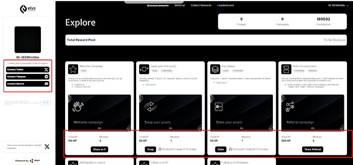 ➢ Connectez-vous avec votre portefeuille Keplr, approuvez la demande et connectez vos réseaux sociaux pour commencer à terminer des quêtes. ➢ Certaines tâches peuvent déjà être complétées si vous avez suivi les étapes précédentes.