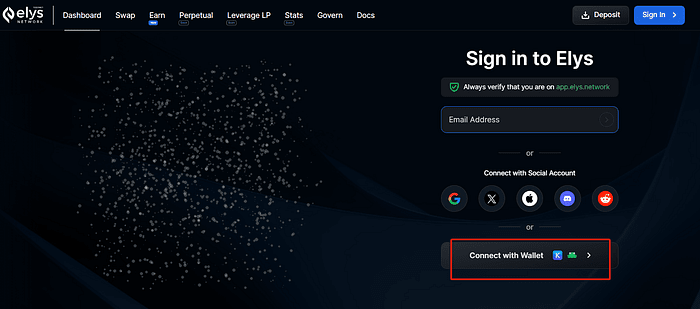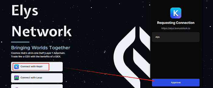 8. Accédez à https://elys.bonusblock.io/?r=x5Ua8kvW