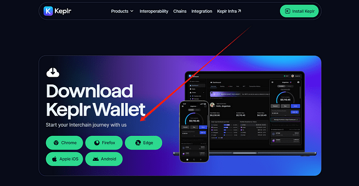 1.Ouvrez http://keplr.app/download ➢ Téléchargez et installez le portefeuille Keplr pour votre plateforme. ➢ Cliquez sur « Créer un nouveau portefeuille » et suivez les instructions simples sur votre écran pour créer un portefeuille. ➢ Si le portefeuille Keplr est déjà installé, vous pouvez ignorer cette étape.