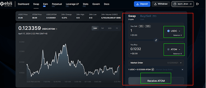 4.Ouvrez https://testnet.elys.network/swap#USDC/ATOM