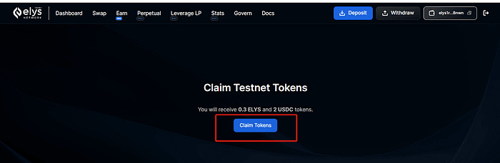 3. Rendez-vous sur https://testnet.elys.network/faucet