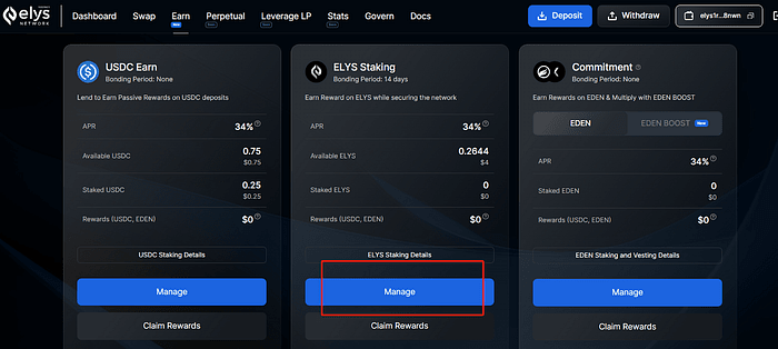 5. Accédez à https://testnet.elys.network/earn/staking