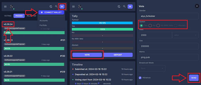 9. Rendez-vous sur https://testnet.ping.pub/elys/gov