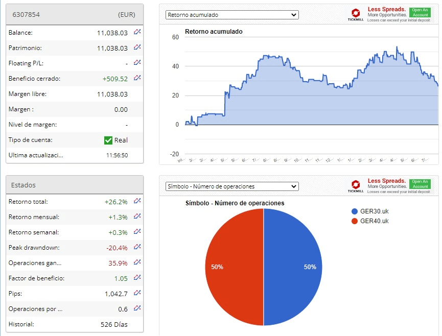 Conclusion : j'ai subi un de ceux qui font l'histoire, en effet, depuis fin 2019 je n'en ai pas eu si fort, mais par contre mon niveau de connaissance du DAX et mon expérience dans ce type de contexte a pris un grand pas, dû bien sûr au coup dur qui m'a fait commencer à tout étudier à fond. Ce sont justement ces mauvais moments qui vous font le plus vous améliorer. J'ai déjà dû baisser le levier à 25% du levier normal pour éviter que les comptes continuent de baisser beaucoup plus, je dois surtout préserver le capital et attendre que le DAX s'aligne à nouveau sur mes stratégies. Il faut être patient et ramer à nouveau pour retrouver les plus hauts de l'année et la clôturer avec une rentabilité décente.