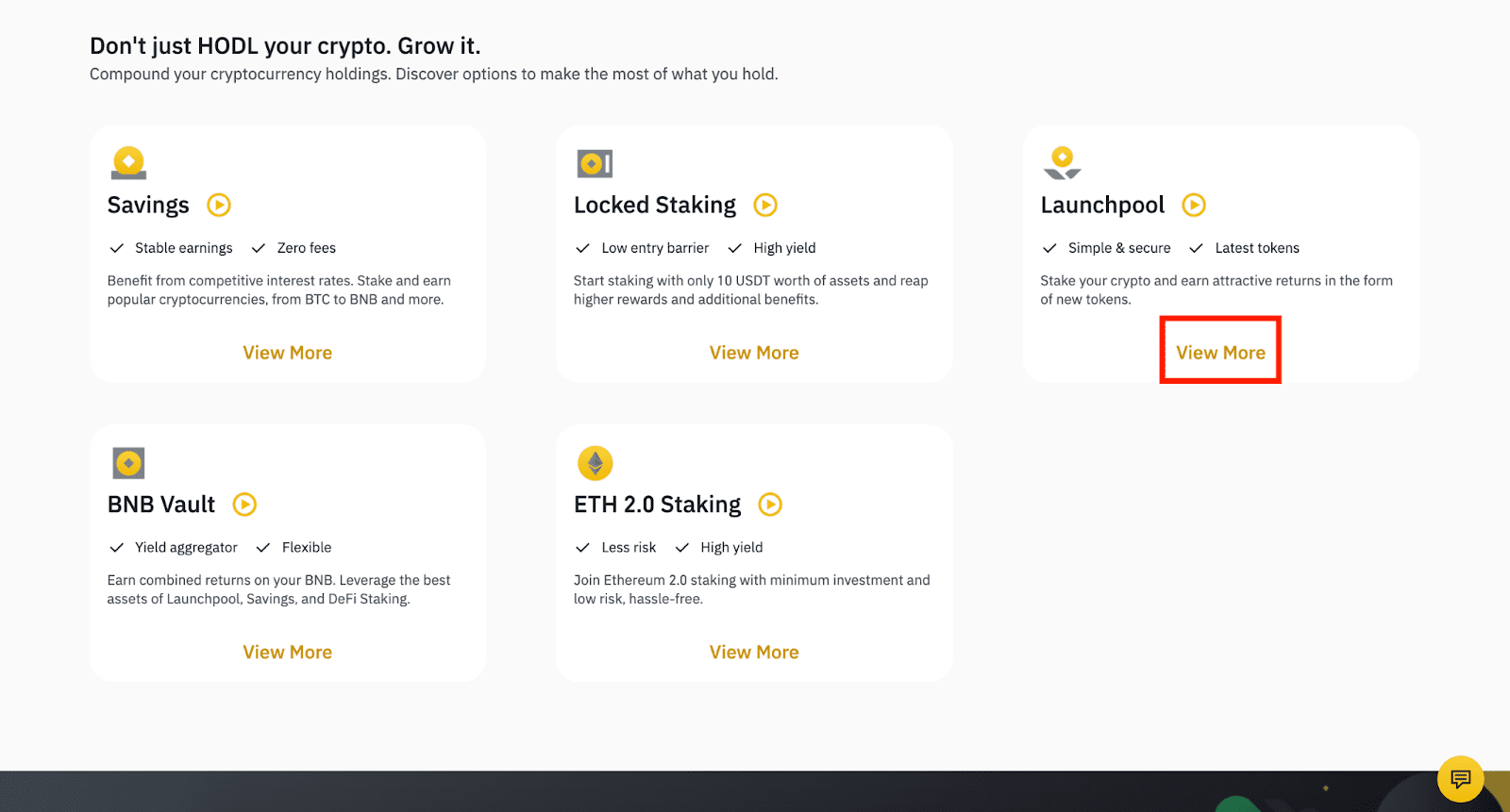 Ensuite, faites défiler vers le bas pour trouver [Launchpool] et la liste des projets disponibles et terminés.