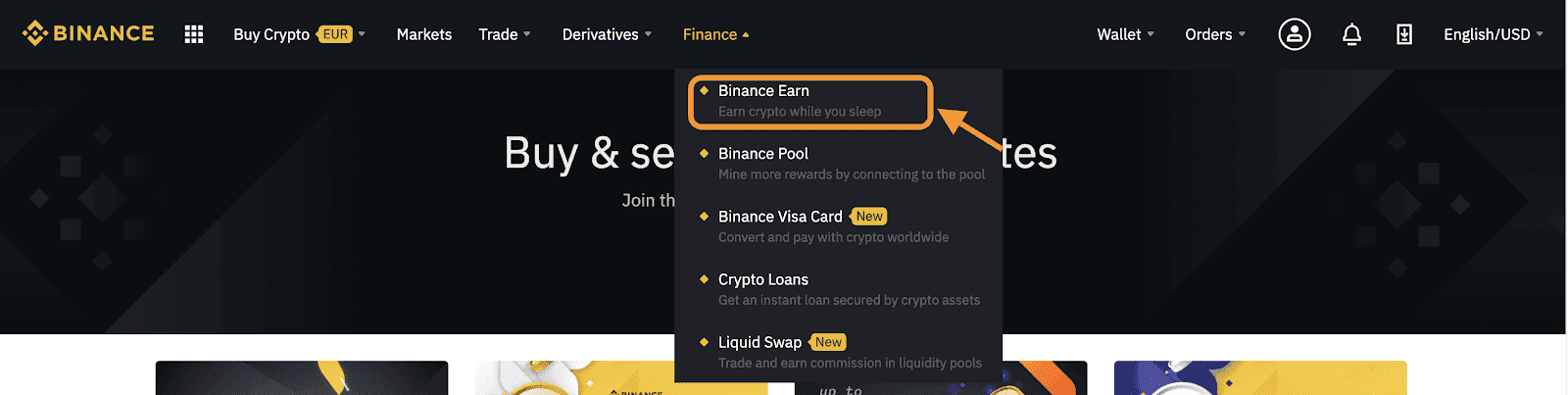 Vous pouvez également accéder à Launchpool en cliquant sur [Finance] - [Binance Earn].