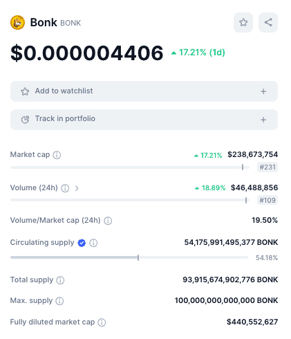 Cependant, un regain de battage médiatique a entraîné la récente flambée des prix de BONK, qui se classe désormais au sixième rang des plus grandes pièces de monnaie au monde, sur la base du volume quotidien des échanges.
