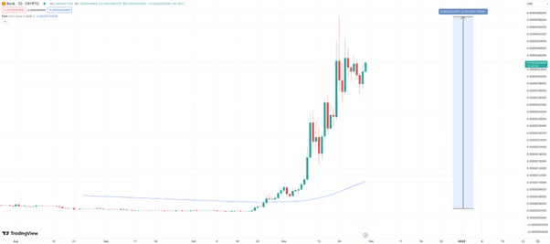 La dernière pièce mème qui fait des vagues est Bonk (BONK), qui a vu son prix monter en flèche de plus de 2 100 % depuis octobre.
