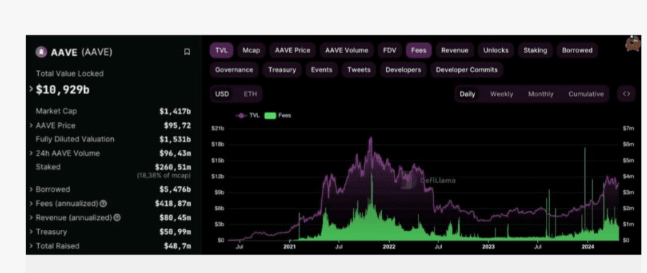 Voici Aave (AAVE) TVL et DeFi. Texte : DefiLlama