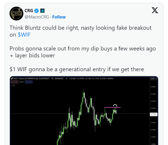 Même avec la récente baisse, les traders et les experts maintiennent un pronostic remarquablement optimiste pour WIF. La question de savoir si WIF atteindra 10 $ ou même grimpera jusqu'à 15 $ reste à débattre compte tenu de sa croissance surprenante de 1 650 % depuis le début de l'année.